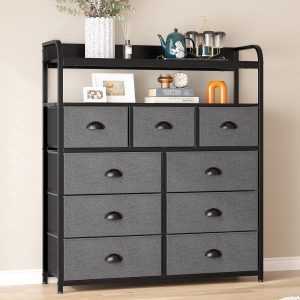 Dresser for Bedroom, Chest of Drawers for Bedroom, Shelves,Metal Frame,Dark